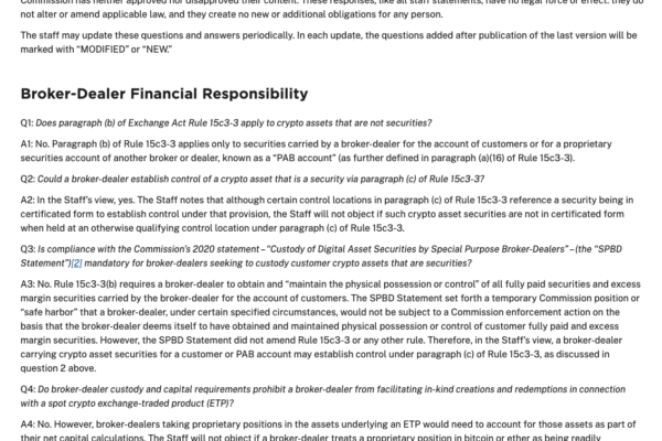 The US Securities and Exchange Commission (SEC) staff last week clarified that broker-dealers can apply a 2% “haircut” to their stablecoin holdings without objection from the SEC. Previously, broker-dealers were uncertain whether to apply a 100% haircut to their dollar-pegged stablecoins, meaning that they did not count the tokens toward their net capital under existing…